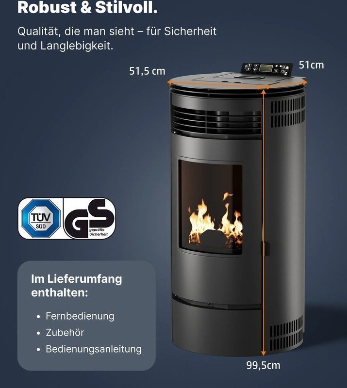 • Energiesparend: Automatischer Eco-Modus für minimalen Pelletverbrauch
